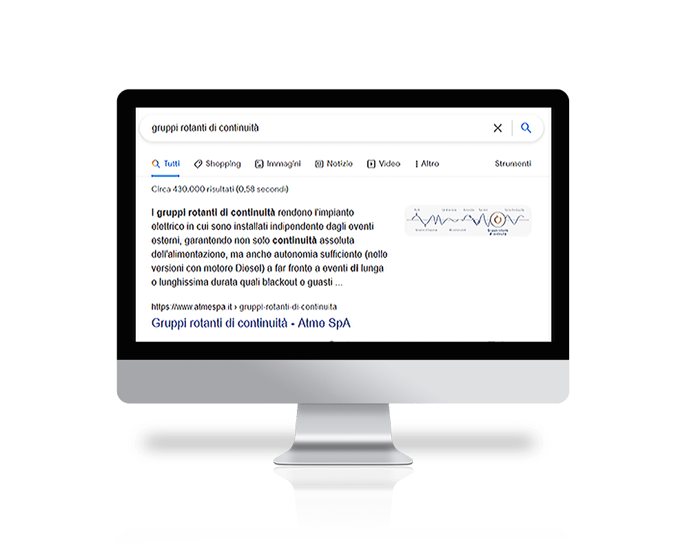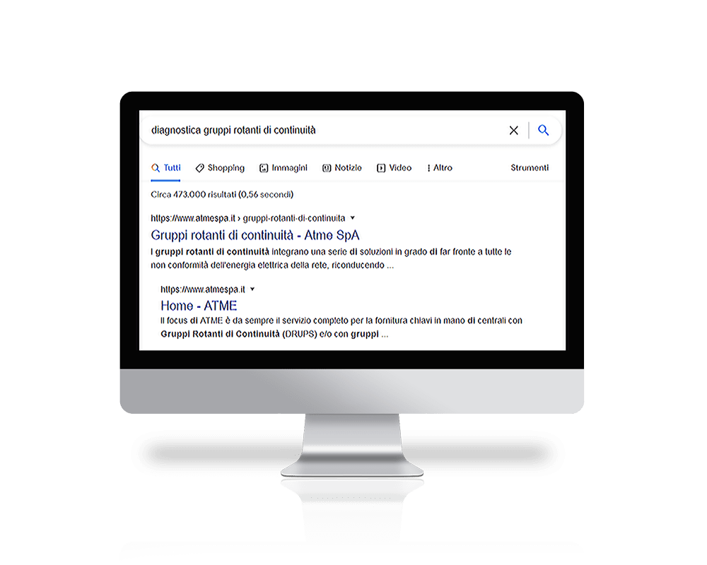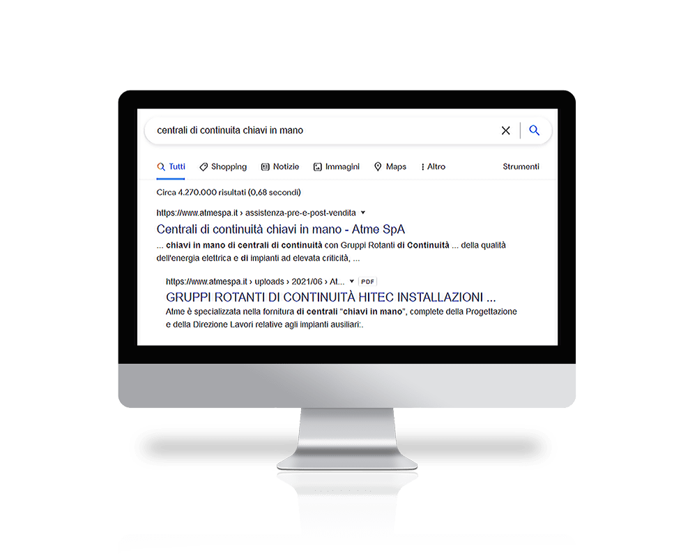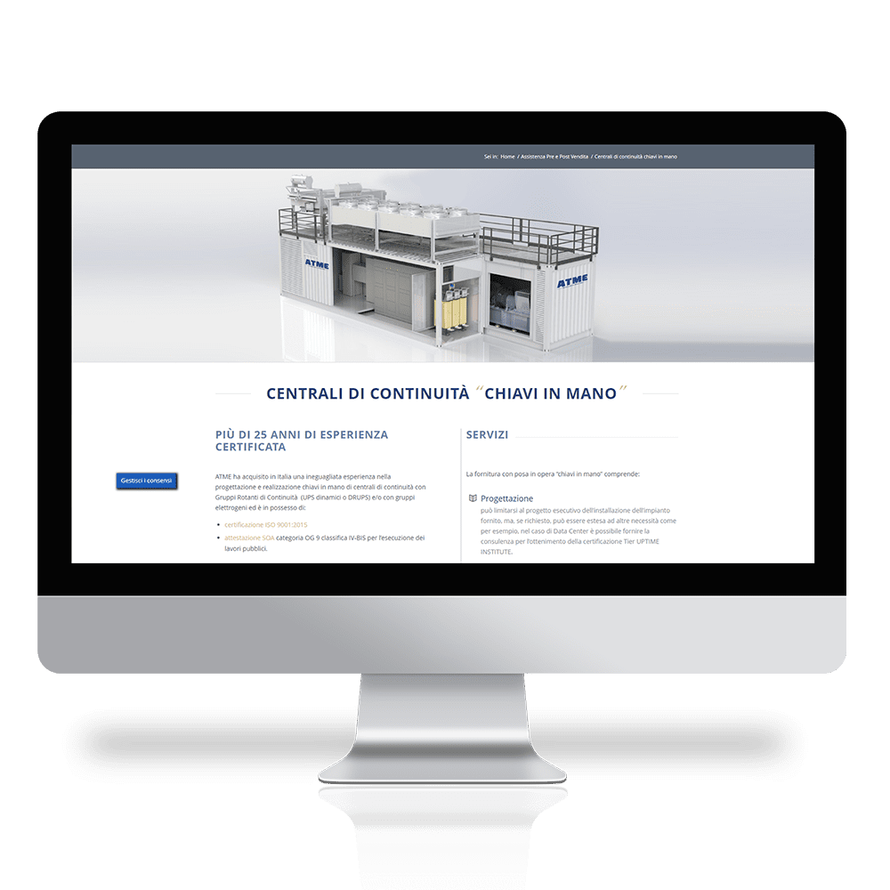 Atme Spa è una realtà tutta italiana nata nel 1995. Una storia nata nel 1995. Passo dopo passo ha conquistato negli anni notorietà, buona reputazione e affidabilità nel settore. Rendendola un punto di riferimento per moltissimi progetti legati alla Power quality & continuity. Ci ha contattati per rifare totalmente il loro sito istituzionale. L’obiettivo era quello di migliorare la user experience e migliorare la loro presenza sui motori di ricerca. In alcuni casi hanno superato sulla S.E.R.P. di Google i loro stessi fornitori.