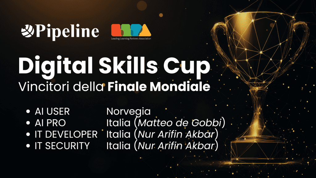 Matteo ha conquistato il primo posto nella categoria AI Pro della Digital Skills Cup 2025, una competizione internazionale promossa dalla Leading Learning Partners Association – network mondiale di centri di formazione IT – di cui Pipeline è rappresentante ufficiale per l’Italia.