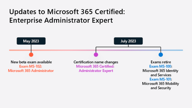 Altri cambiamenti in merito alle certificazioni Microsoft 365: non dovrai più sostenere gli esami MS-100 e MS-101 per diventare Microsoft 365 Certified: Enterprise Administrator Expert. Scopri i dettagli del nuovo corso MS-102, indispensabile per chi vuole gestire efficacemente Microsoft 365!